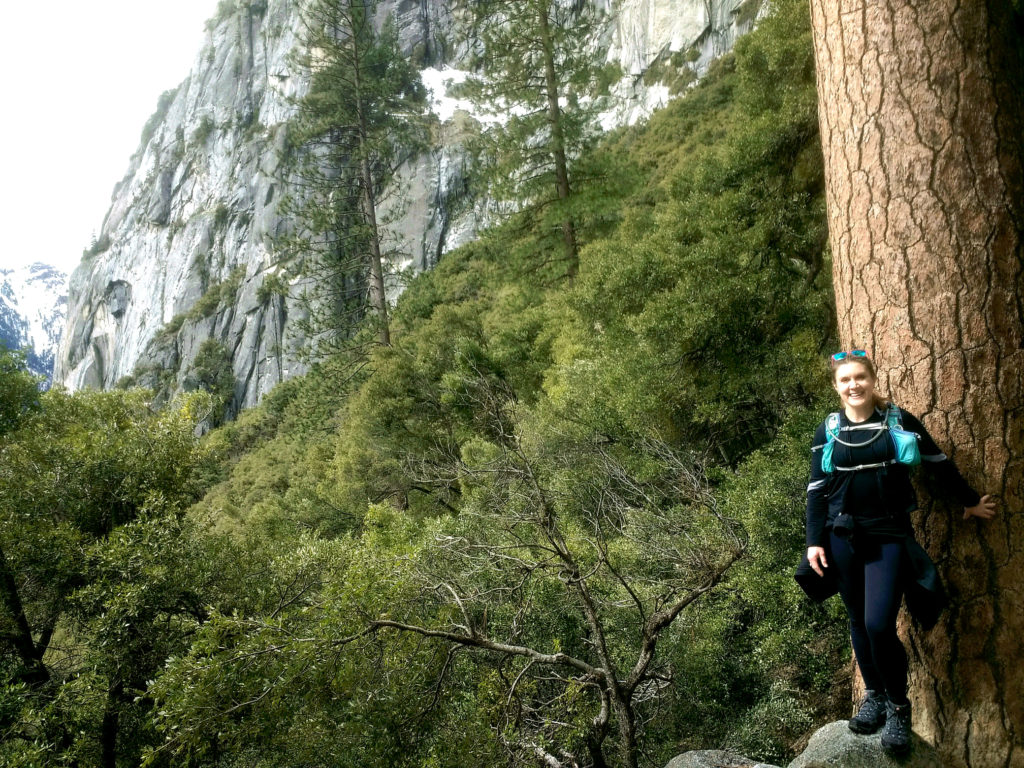In Yosemite, there was still snow on top of the peaks left over from winter. At one point, we hiked precariously along a snow-covered path that angled straight off a cliff. The stretch of trail was heart pounding. We hiked in silence, laser-focused on each foothold lest we slip and fall off.